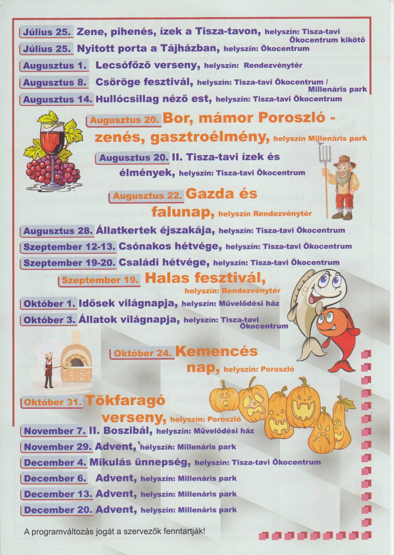 POROSZLÓI PROGRAMOK 2026